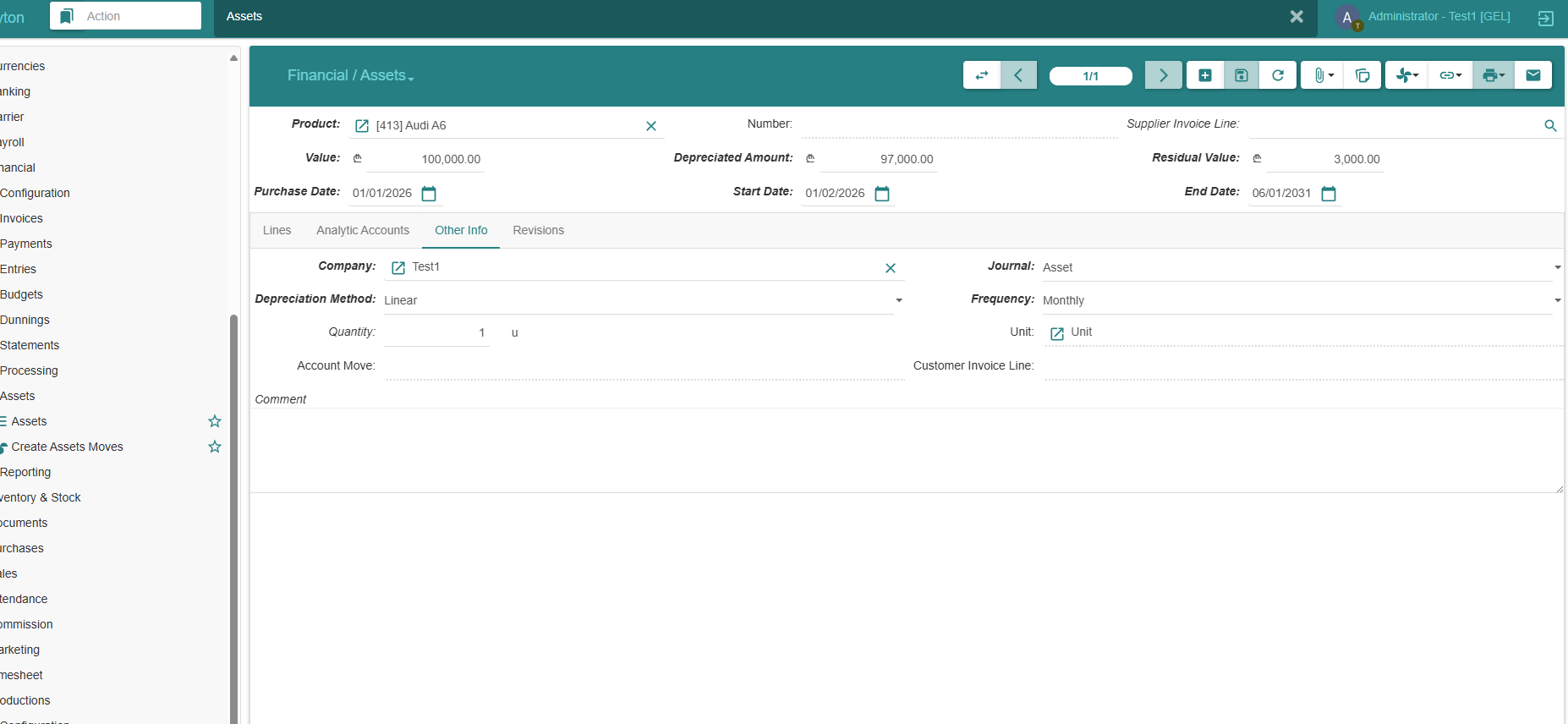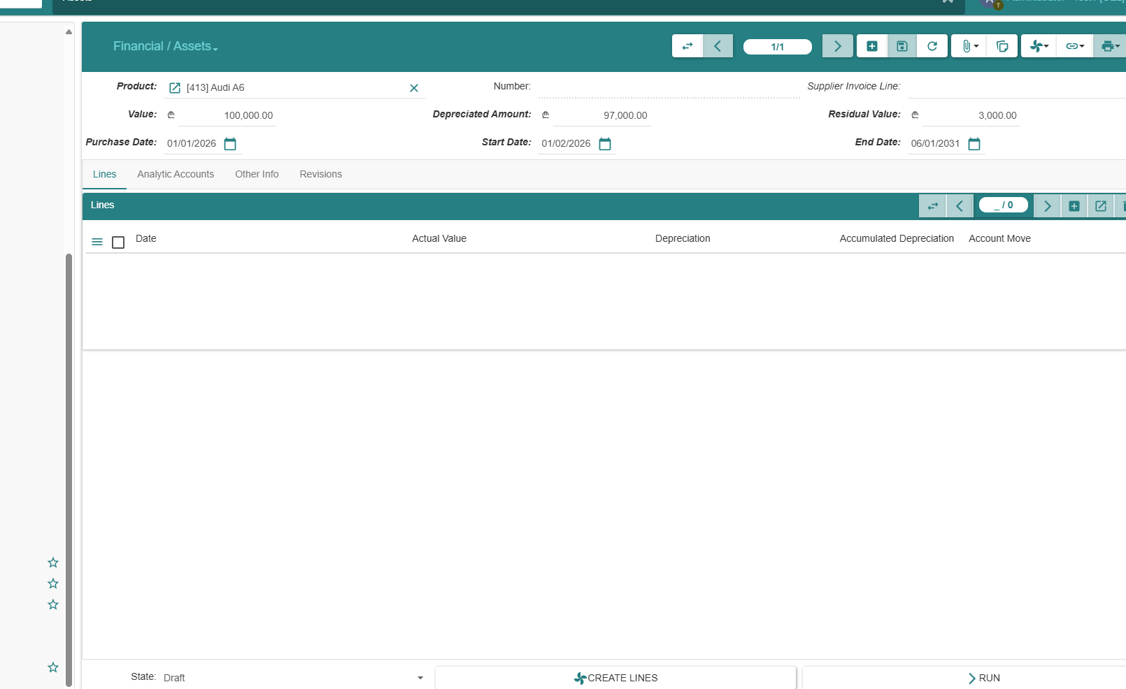 I created an Asset and configured all required fields, but the depreciation schedule/lines are not generated. Tried all options I could find: