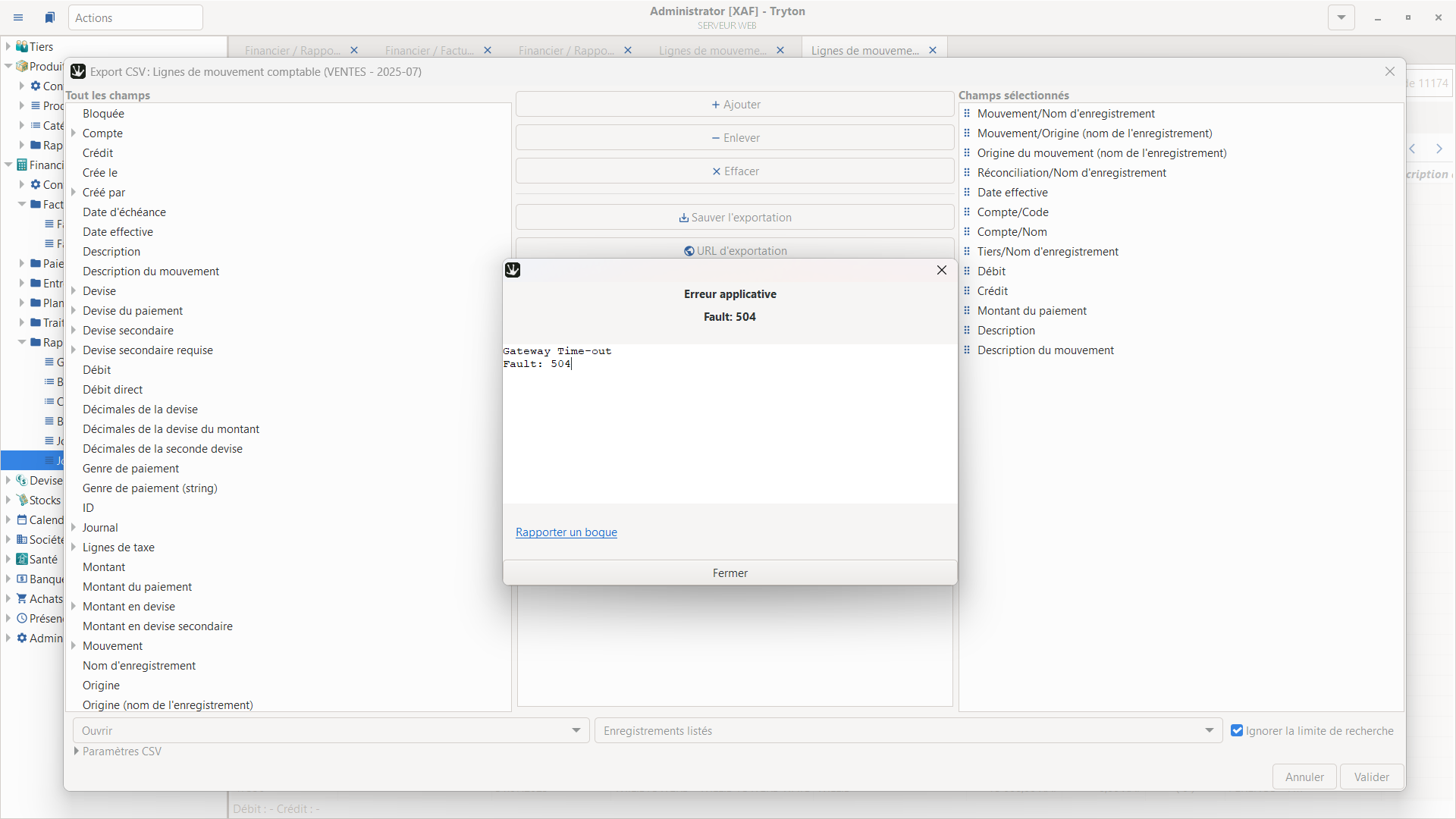 When I try to export more than 3000 lines, I get an error message, which prevents me from extracting all the data at once.