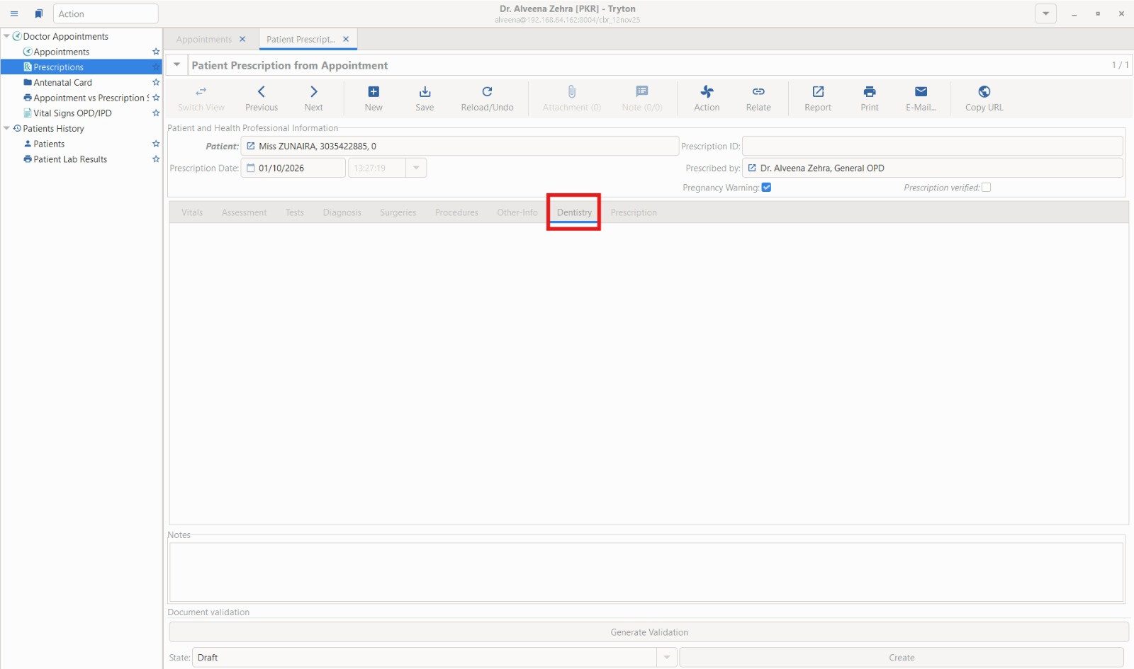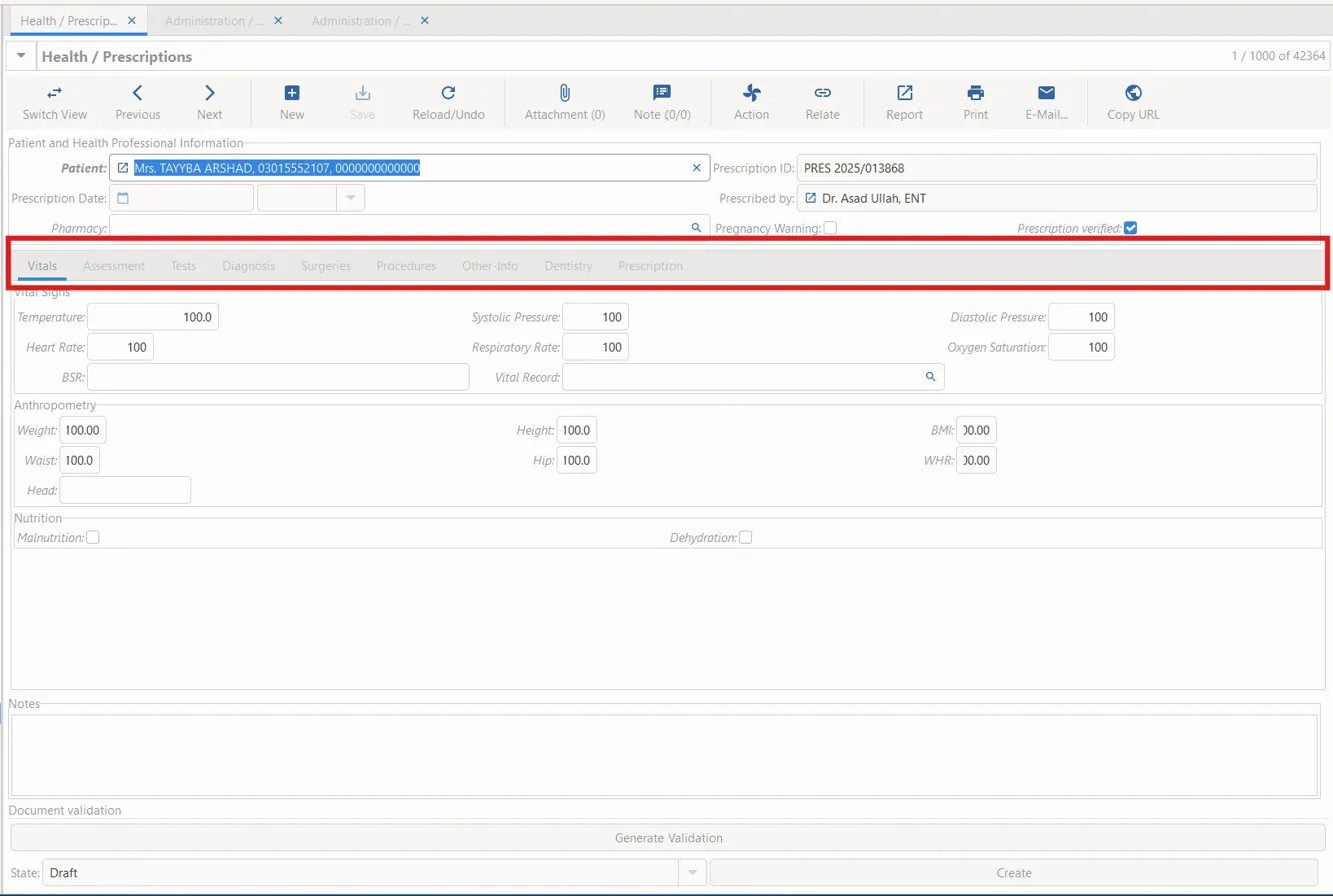 The requirement is that only those Tabs/Pages should be visible in Prescription which are related to the doctor’s specialty.
