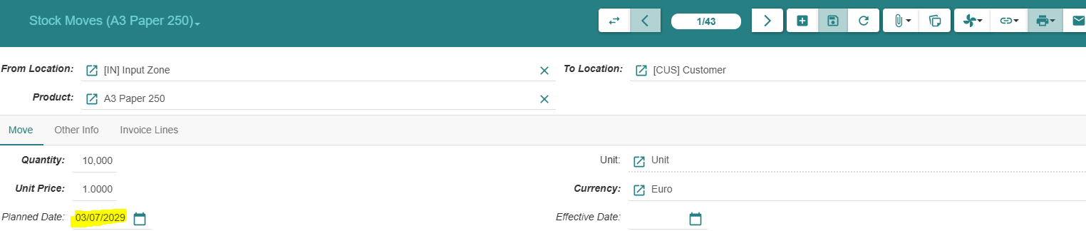 In result, the supply stock wizard is creating a purchase request to meet this move, but shouldn’t it just compute the stock level of the next month? (which is greater than the minimun quantity defined on the order point)