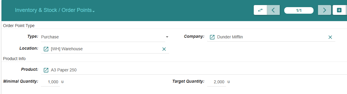 In the demo, I’ve created an order point for a product: